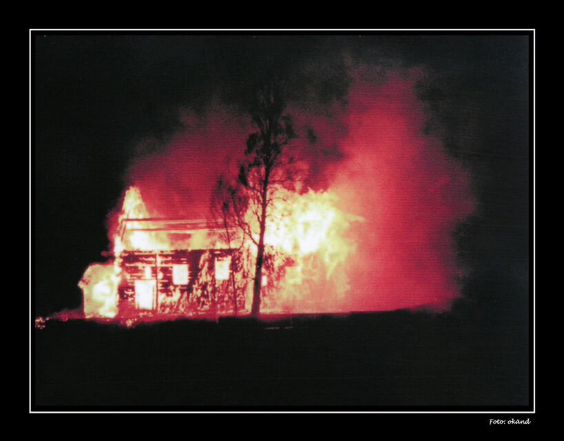 Strax före 02.30 den 12 november 2001 gick larmet. Den gamla kulturhistoriska kyrkan brinner. Man kommer snart underfund med att den inte är möjloig att rädda. Först efter ca två år klarläggs orsaken till branden. Det var mordbrand. En mycket tragisk kulturhistorisk händelse. Den gamla kyrkan finns nu inte längre.